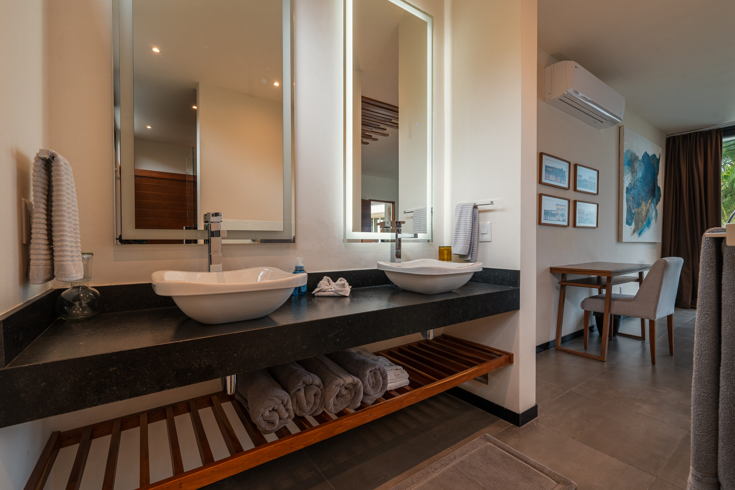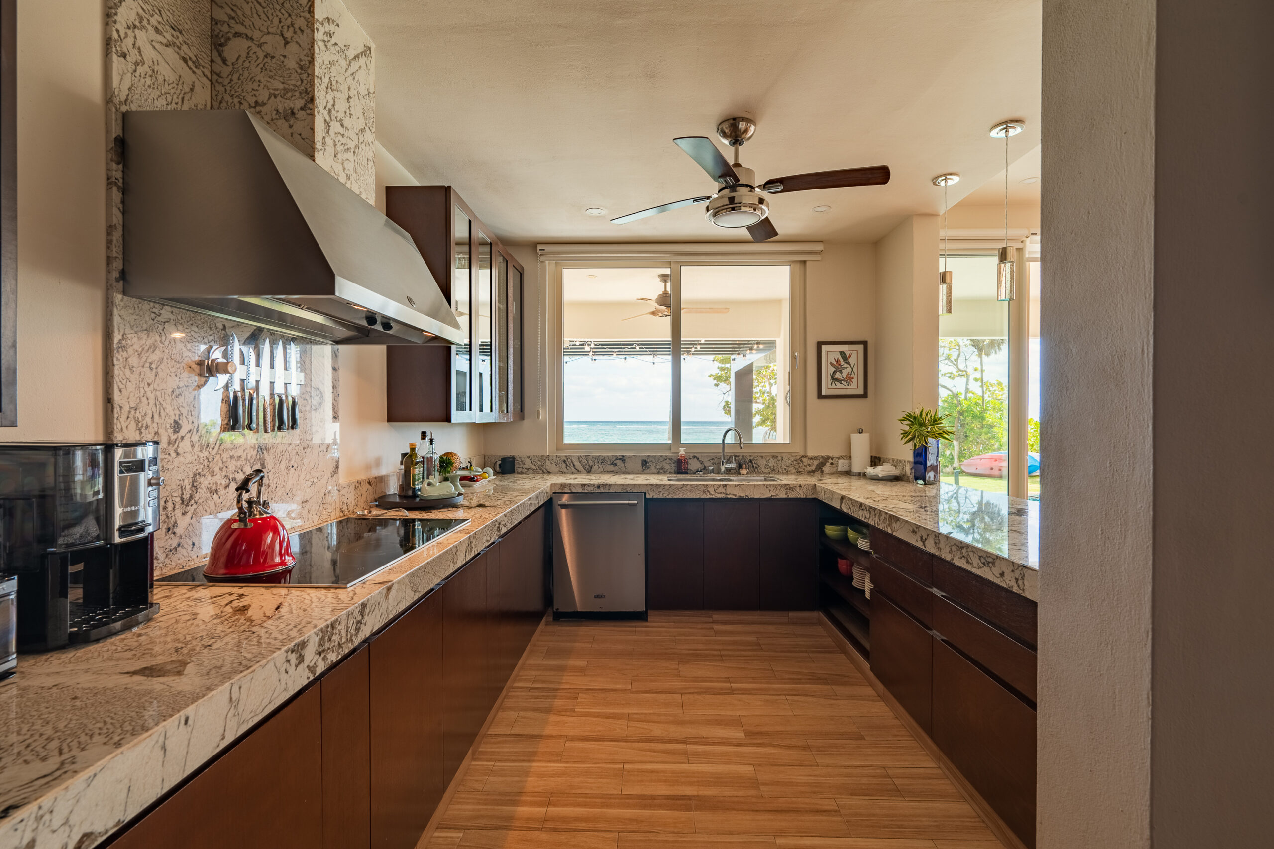 The kitchen is beautifully organized and well equipped. Our own semi-private beach was beautiful with nice sand and snorkeling at our fingertips. The pool was perfect for the kids and the gardens have so many places to hang out